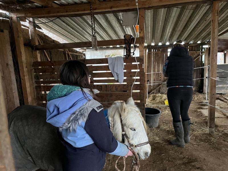 Unsere Tochter hatte schon eine ganze Weile eine Pflegebeteiligung für ein Shetland-Pony. Seit diesem Jahr ist es mehr als eine Pflegebeteiligung – der kleine weiße Wallach wurde ihr von der Besitzerin zur Verfügung gestellt und sie hat jetzt (fast) die volle Verantwortung für ihn, und auch wenn es vielleicht nicht immer einfach ist, so kümmert sie sich doch wirklich extrem verantwortungsbewusst um ihn – und das bei jedem Wetter.